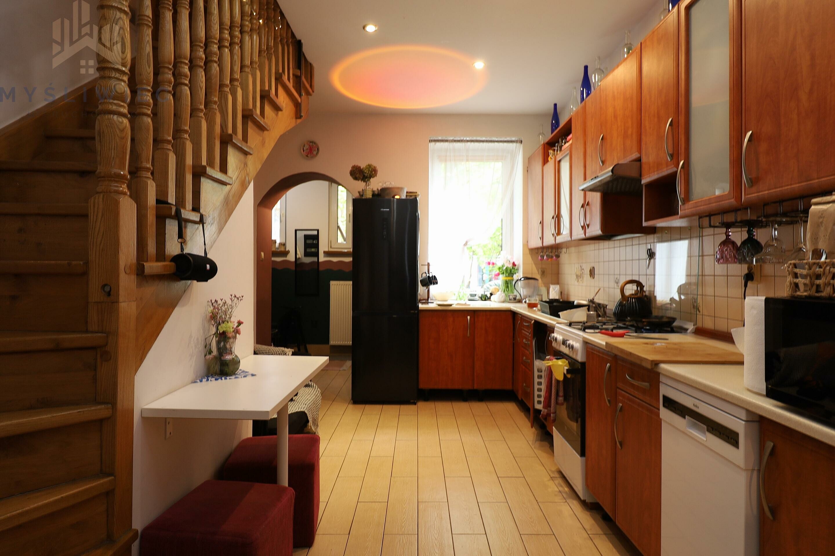 Dom posiada dwie kondygnacje mieszkalne i dodatkową część poddasza o powierzchni 10,2 m2, która może zostać zaadaptowane na kolejne pokoje. Dodatkowo przynależą do niego trzy piwnice - 6,8 m2, 5,2 m2 oraz 7,3 m2.