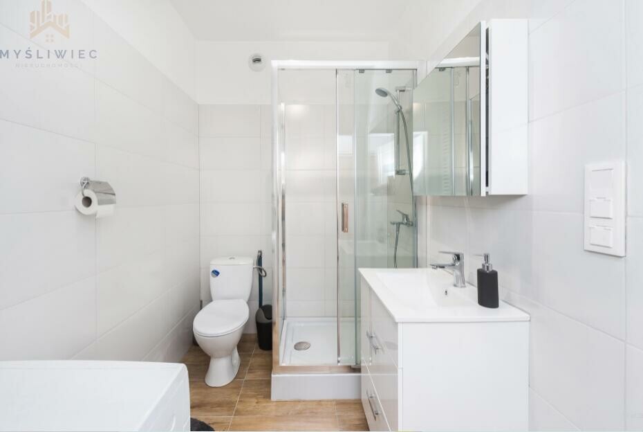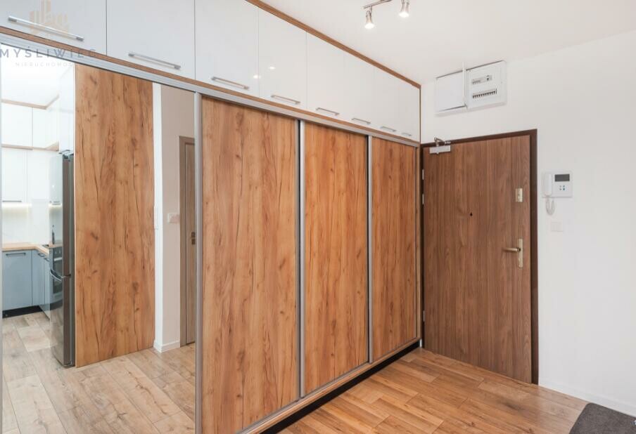 Kuchnia jest w wyposażona w meble na wymiar, sprzęt AGD (lodówka, zmywarka, piekarnik, płyta indukcyjna, okap). Całość jest ergonomicznie zaprojektowana i nie wymaga dodatkowych nakładów finansowych. W przedpokoju znajduje się pojemna szafa na wymiar z przesuwnymi drzwiami. W łazience znajduje się pralka, prysznic, wc. Ogrzewanie i ciepła woda z sieci miejskiej.