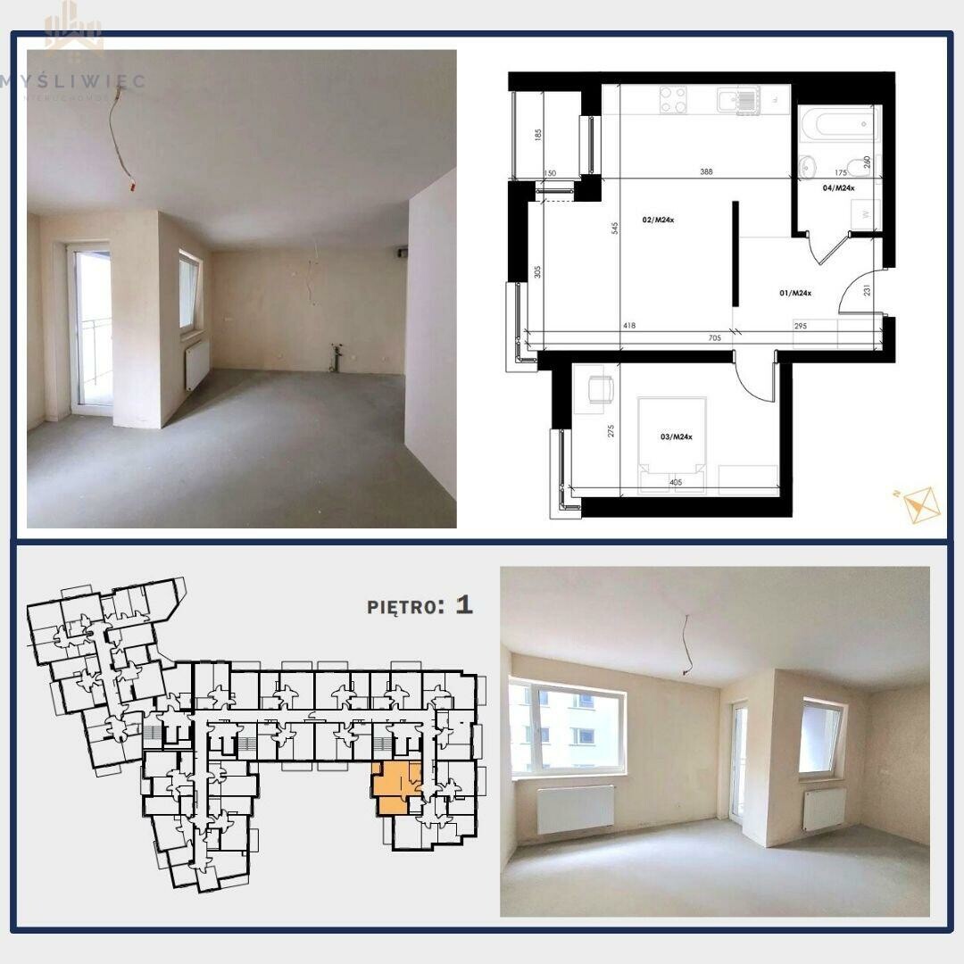 Mieszkanie o powierzchni 46 m2 położone jest na pierwszym piętrze w jedenastopiętrowym budynku z 2022 roku na osiedlu Własne Miejsce.