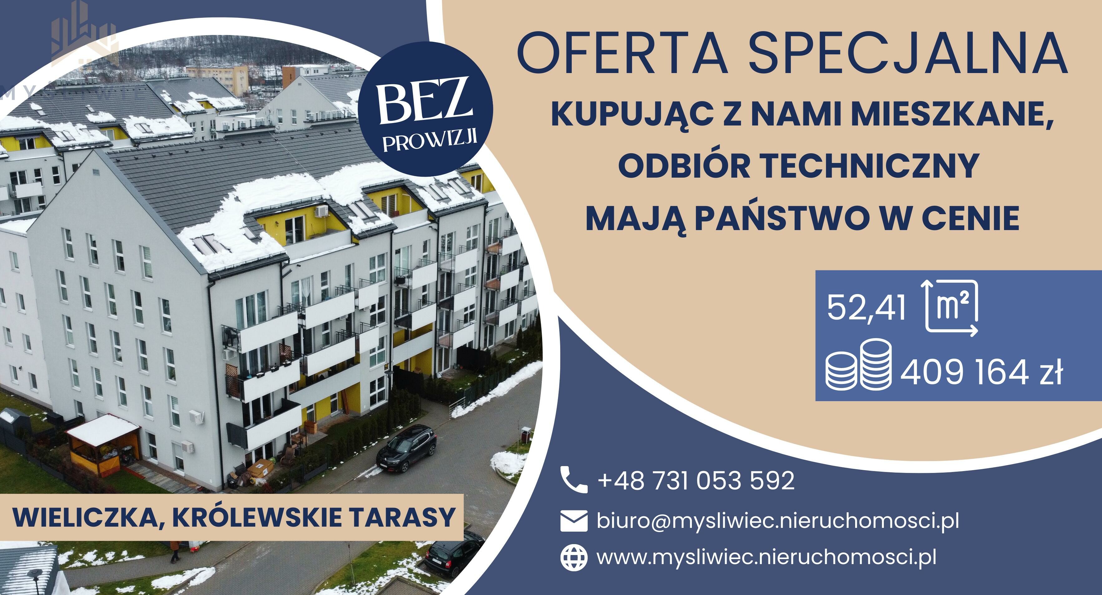 Mamy przyjemność zaprezentować Państwu inwestycję w Wieliczce Królewskie Tarasy! Osiedle doskonale skomunikowane ze stolicą małopolski, w spokojnej zielonej okolicy, 20 minut autem do centrum Krakowa. Inwestycja oddana do użytkowania w 2022 r., mieszkanie w stanie deweloperskim.