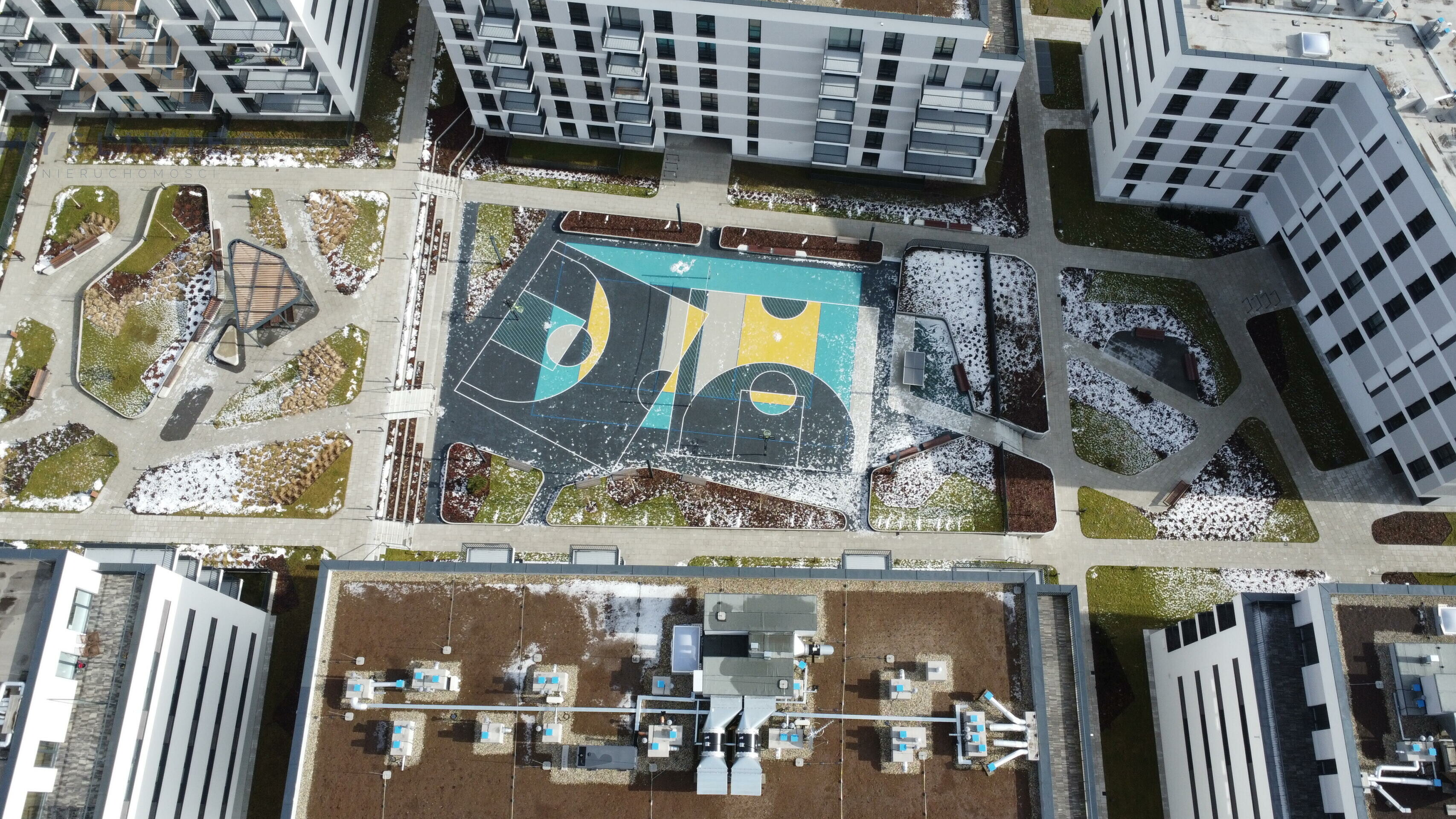 Nowoczesne osiedle zlokalizowane jest tuż przy nowobudowanej linii tramwajowej z przystankiem przy osiedlu.
