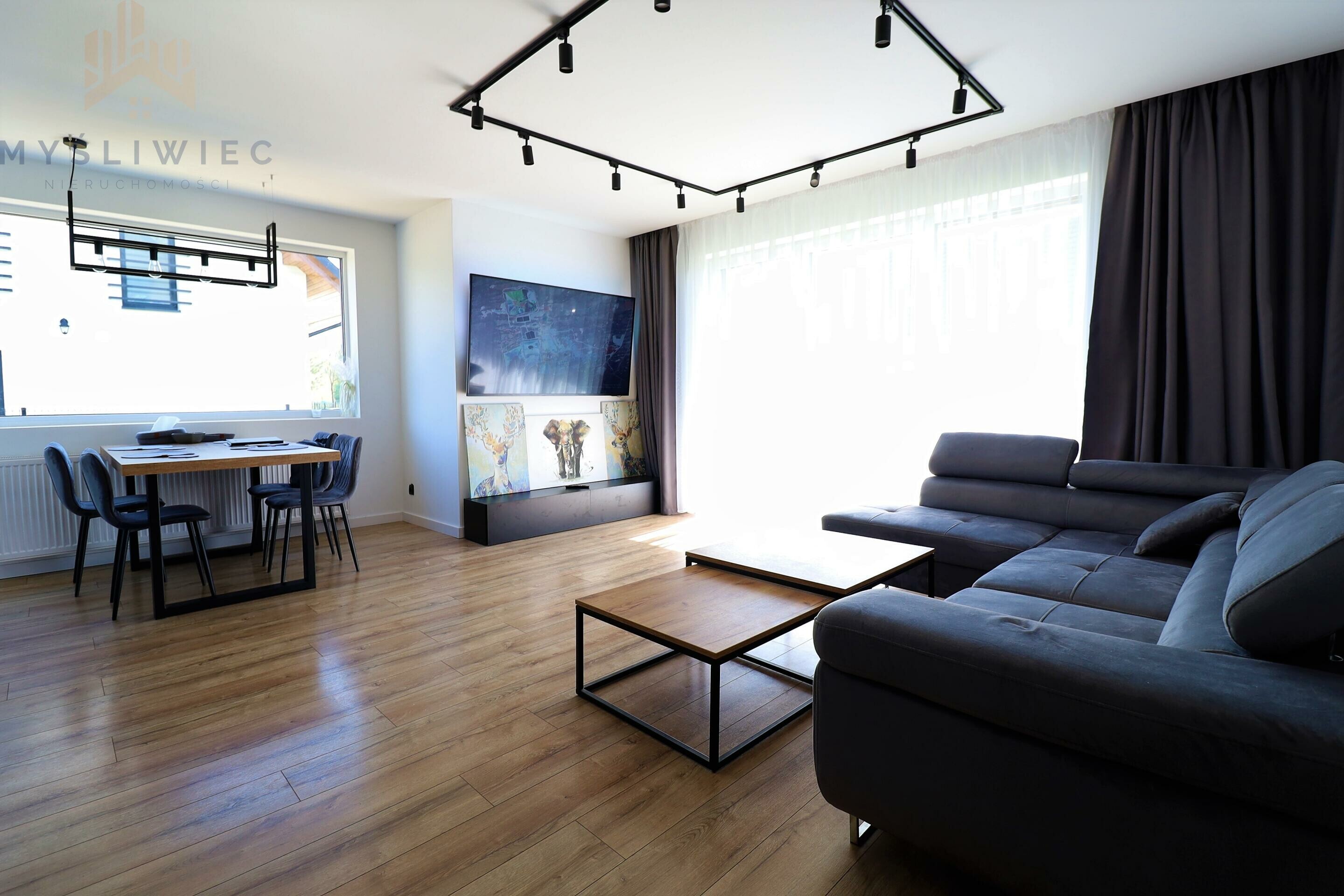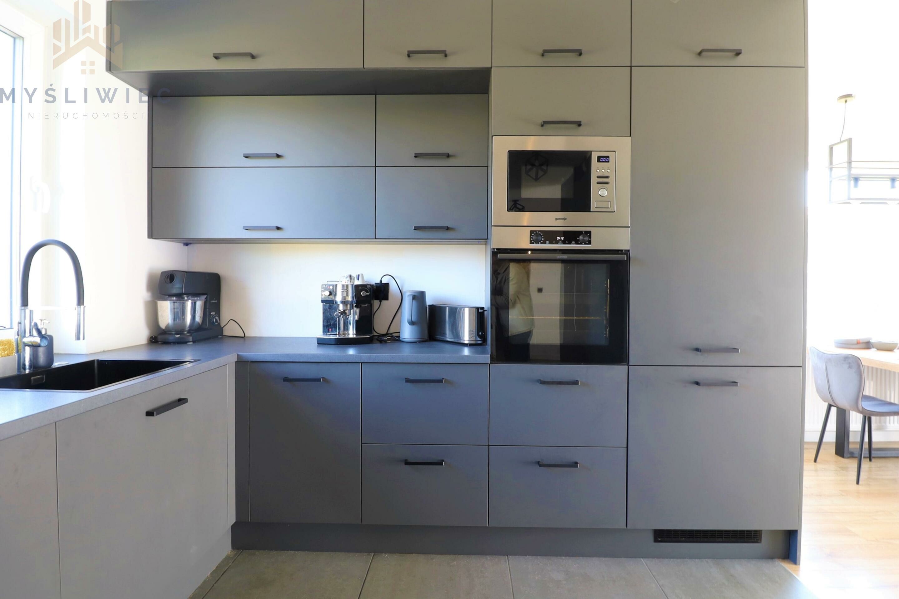 - w pełni wyposażona kuchnia (płyta indukcyjna, piekarnik, lodówka, zmywarka, nowoczesny okap),