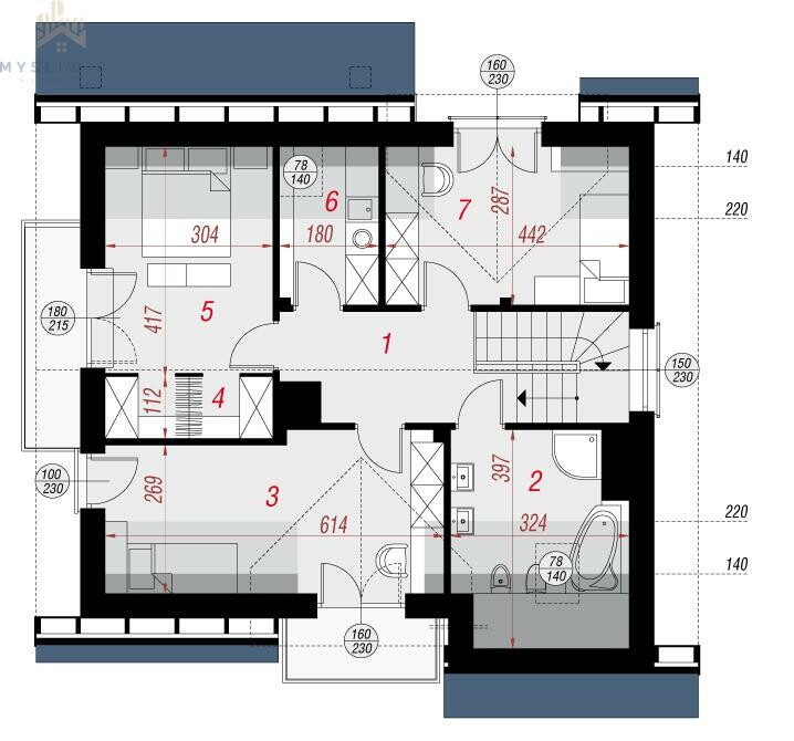Dom jest jasny i słoneczny, posiada prostą bryłę wzbogaconą balkonem i dwiema lukarnami.